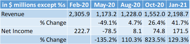 The Lipstick Index has the same fallibility. For instance, here is how Ulta Beauty’s (ULTA) sales fared during the early parts of COVID-19.